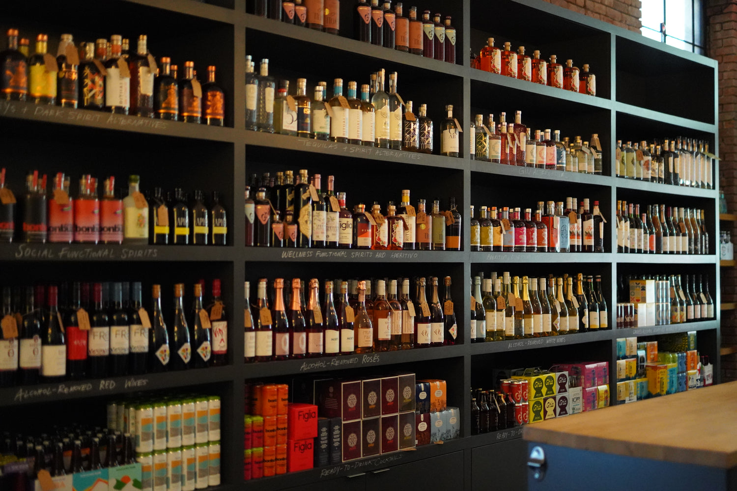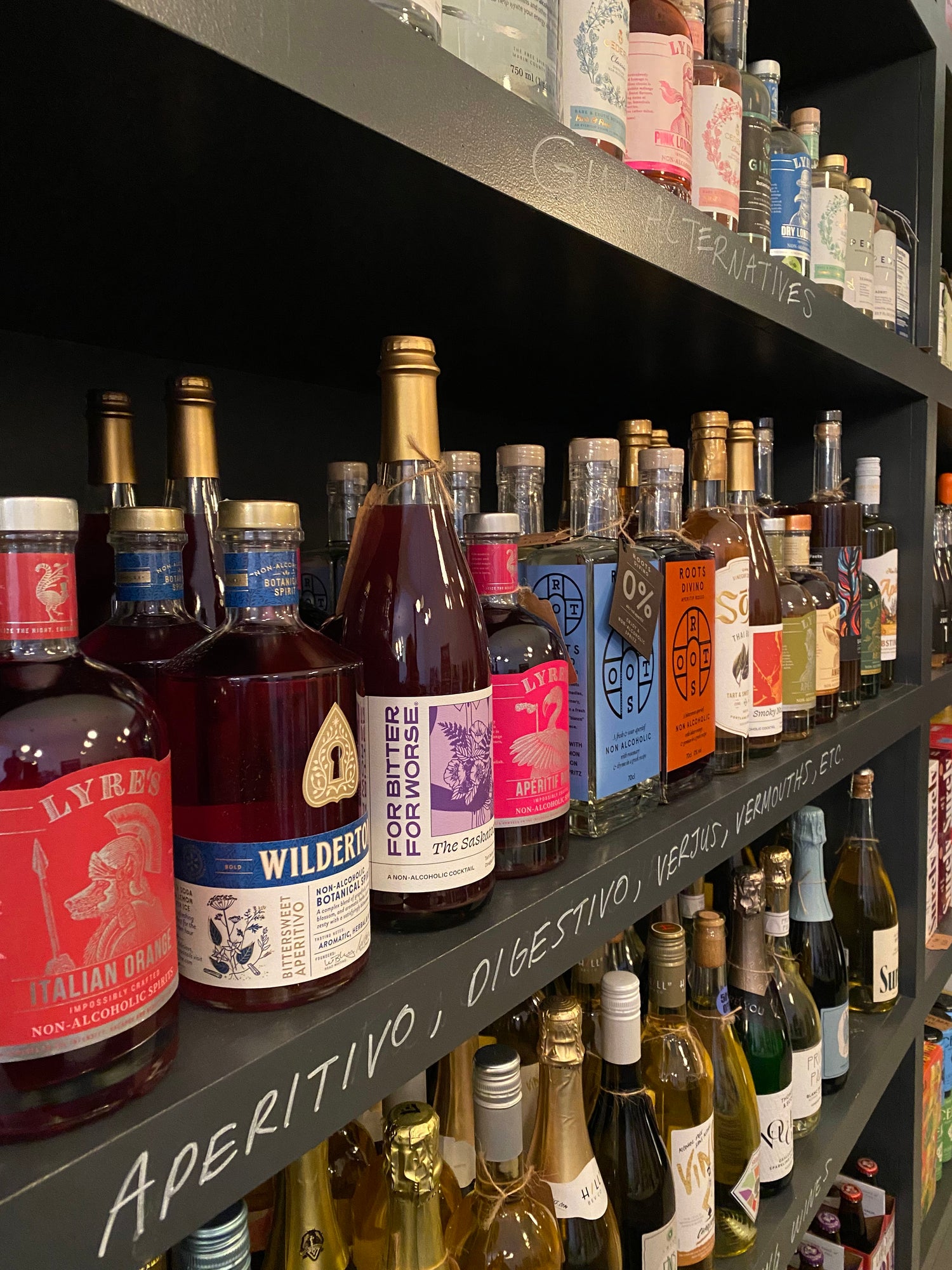 And you'll find classic alcohol-free brands like Seedlip and Ritual Zero Proof, New York favorites like Ghia and The Pathfinder, sparkling teas from Unified Ferments and Copenhagen Sparkling Teas, and wines from Sovi and Prima Pave.