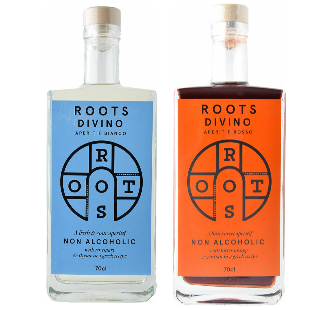 ROOTS DIVINO are non-alcoholic aperitifs based on wine (di vino). The halo shape on the label symbolizes the “divine” effect of enjoying a drinking occasion without the alcohol.