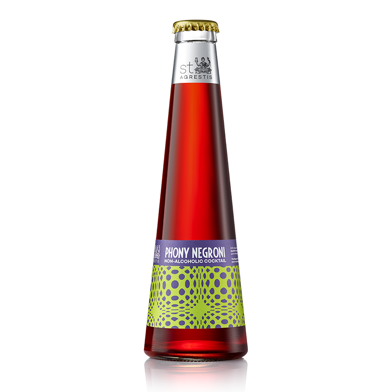 Non-alcoholic with nuanced juniper, citrus, and floral notes, the St. Agrestis Phony Negroni drinks with the same bitterness drinkers of the classic cocktail expect, sans alcohol. We’ve also added carbonation to help mimic the bite that alcohol typically provides. Enjoy chilled straight from the bottle or over ice with an orange twist.